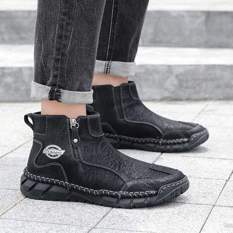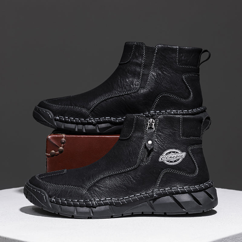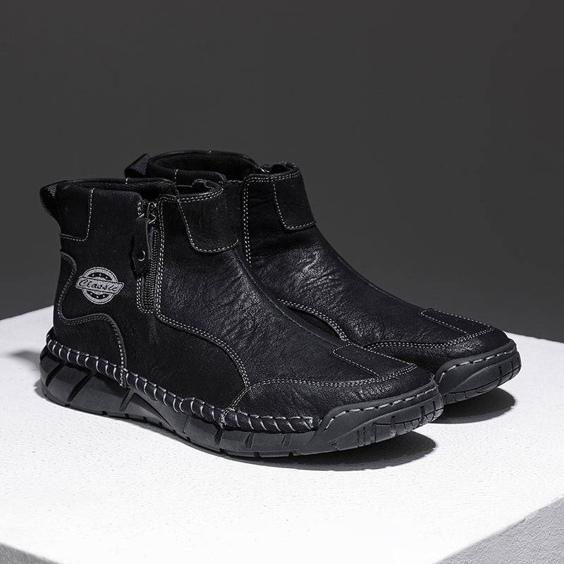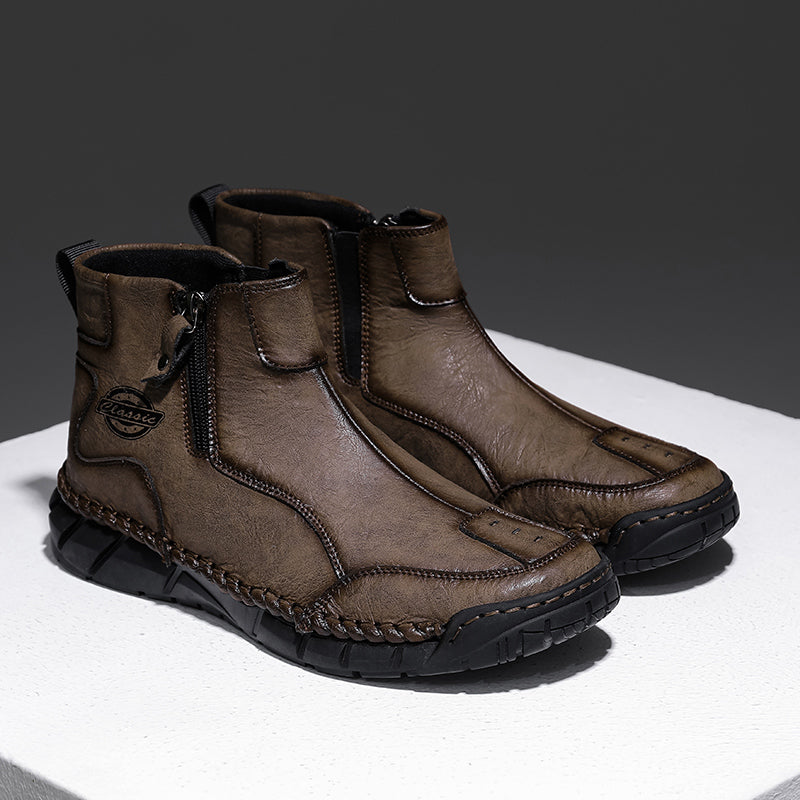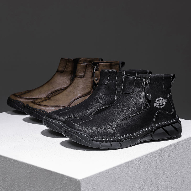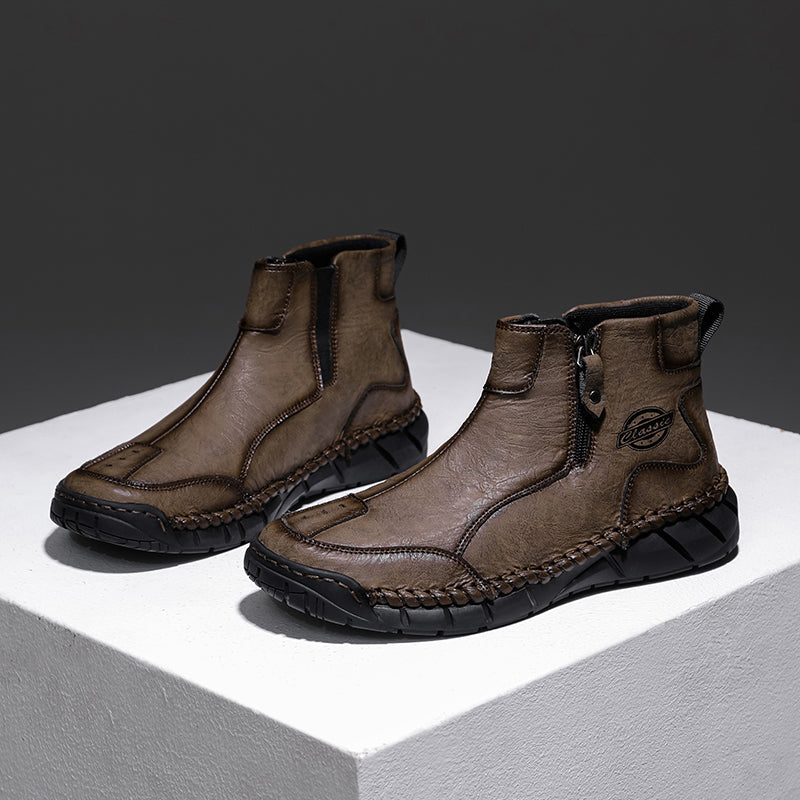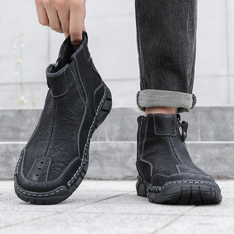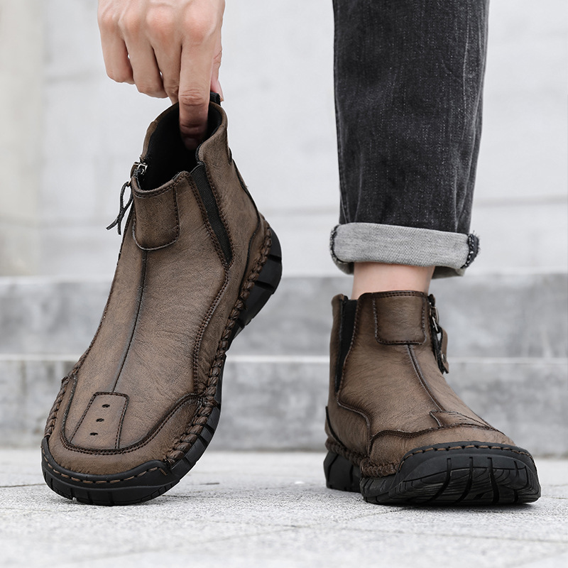 These men’s vintage-style outdoor shoes are crafted from premium full-grain leather with hand-stitched details, combining classic quality with modern style. Designed with built-in arch support and a roomy toe box, they ensure all-day comfort. Waterproof and breathable materials paired with a lightweight, non-slip sole make them perfect for hiking or everyday wear. We stand behind our quality — if the leather cracks within two years, we’ll replace them for free. Durable, comfortable, and timeless—these shoes are made to keep up with your active lifestyle.