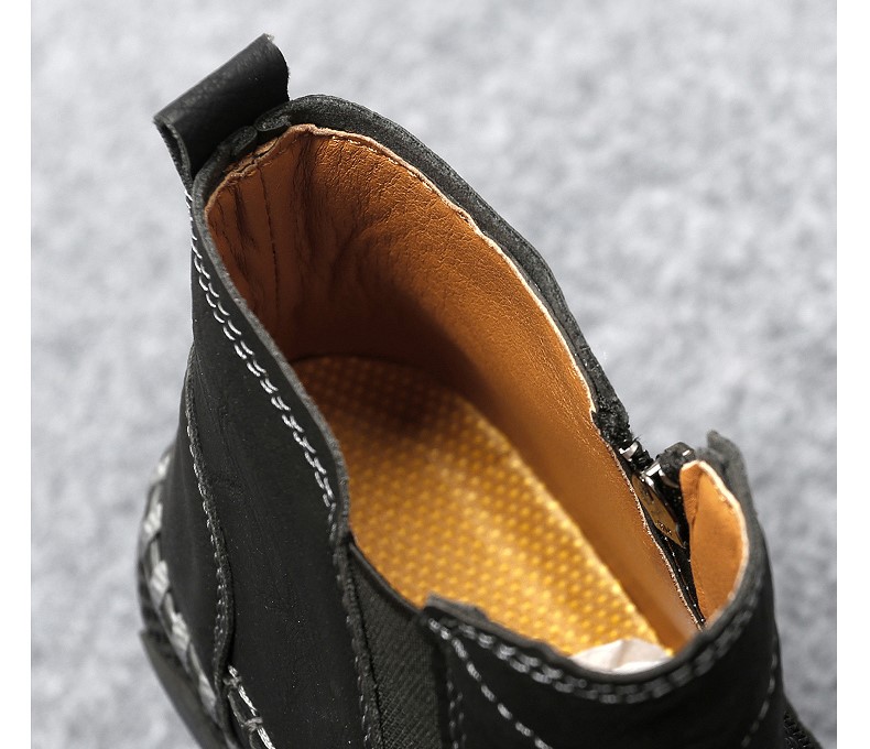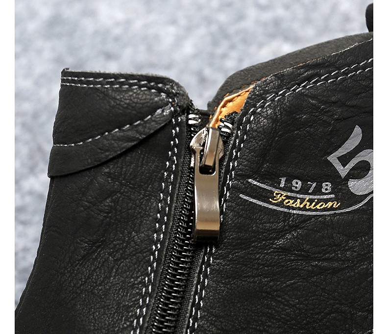 - Tired of wrestling with laces? Our reinforced YKK metal zipper glides smoothly for quick on/off, even with one hand. The internal gusset prevents snagging while keeping debris out—perfect for guys with stiff knees or anyone valuing fuss-free convenience.