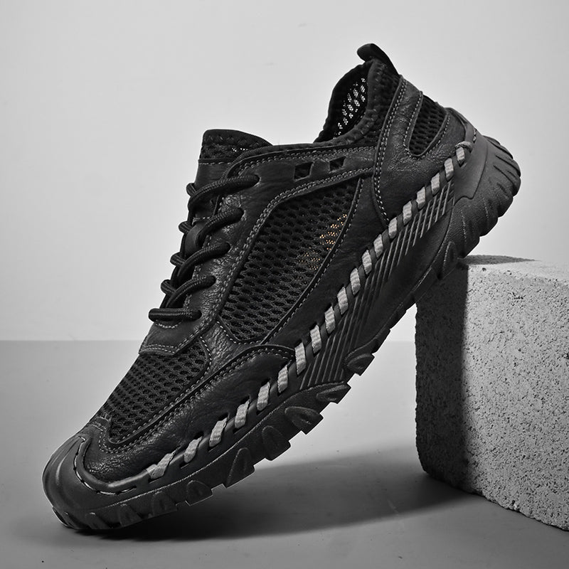(⏰LAST DAY-70% OFF🛒)Men’s Genuine Leather Loafers – Breathable Mesh Slip-On Casual Shoes with Arch Support, Wide Toe Design, Hand-Sewn Stitching & Anti-Slip Sole for Work & Driving