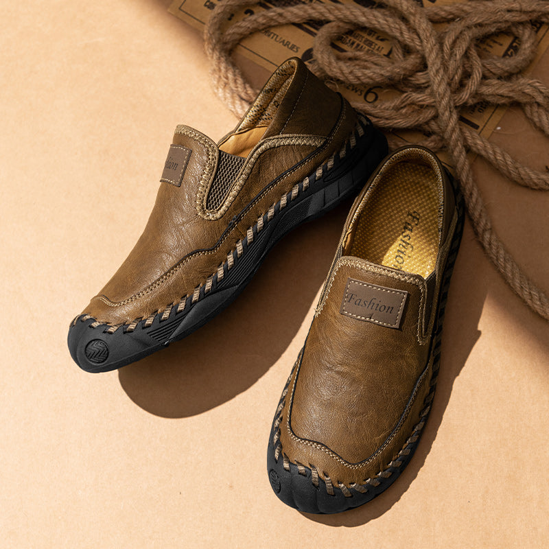 (⏰LAST DAY-70% OFF🛒)Men’s Genuine Leather Outdoor Loafers – Arch Support Slip-On Hiking Walking Shoes, Breathable & Anti-Slip Driving Casual Shoes for Work & Everyday Use