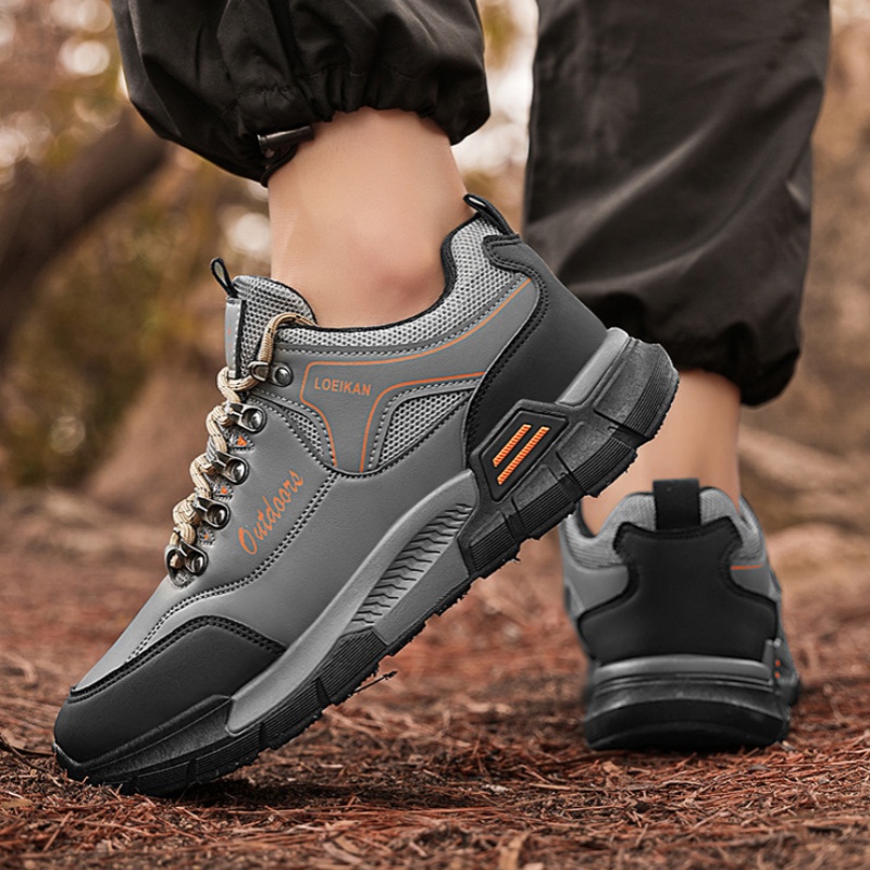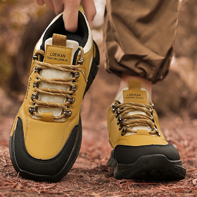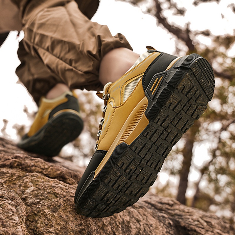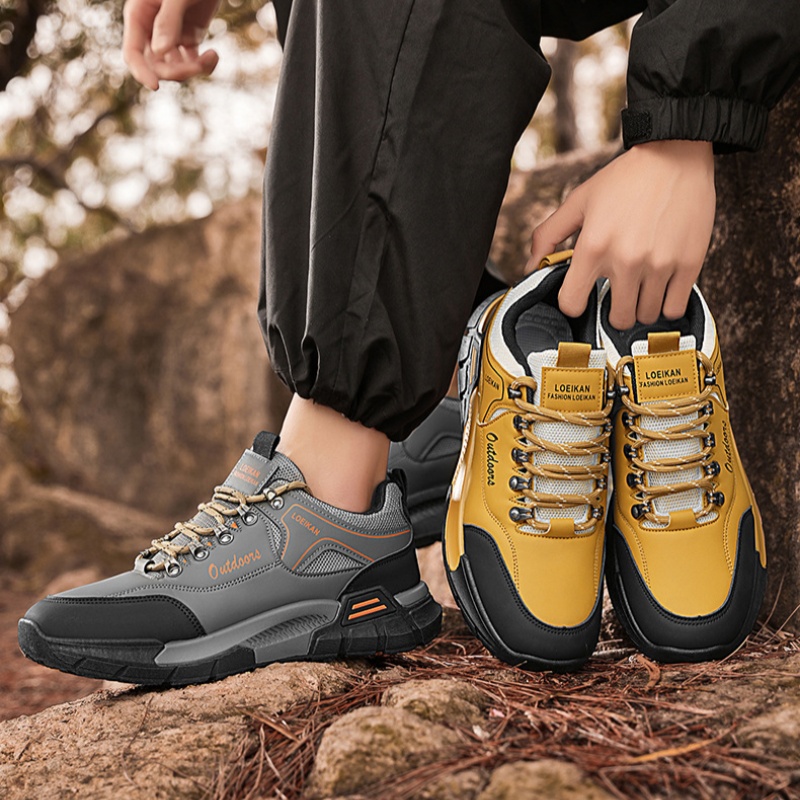 (⏰LAST DAY-70% OFF🛒)Men's Waterproof Hiking Work Shoes Lightweight Non-Slip Outdoor Trekking Sneakers with Arch Support, Breathable Suede & Mesh Trail Walking Shoes