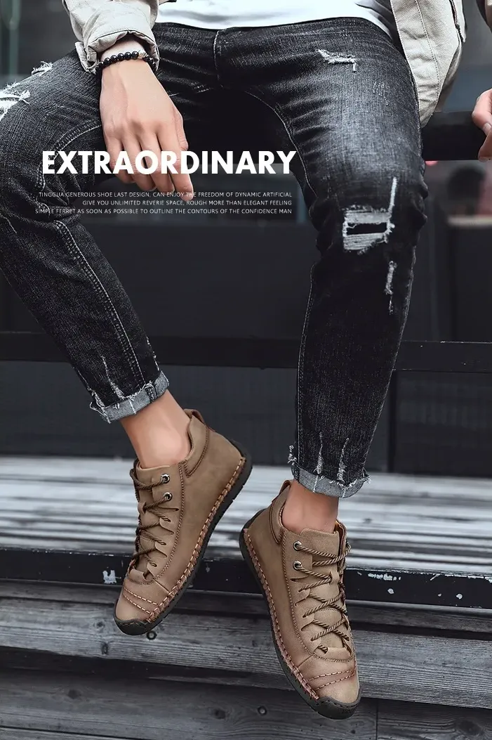 🚨70% Off! Limited Time Offer, While Supplies Last! 🚨Men's Outdoor Comfort Leather Arch Support Boots Non-slip Wear-resistant Driving Boots