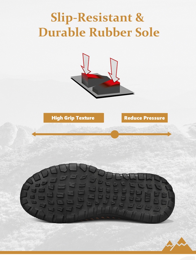 Its shock-absorbing build cushions every step, reducing pressure on your ankles and knees, while the slip-resistant tread keeps you steady on any terrain.