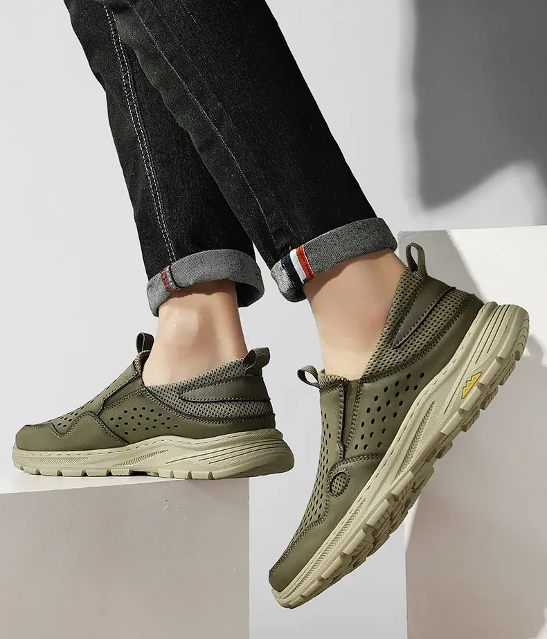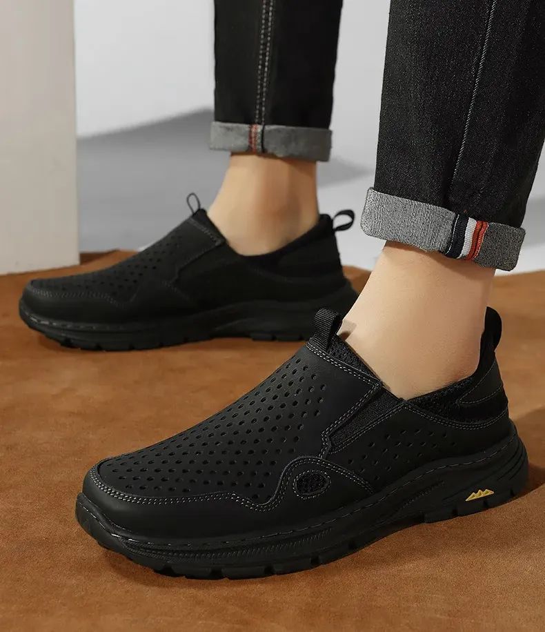 ⏰Limited Time 60% OFF🛒 Men's Handmade Slip-On Leather Walking Sneakers – Orthopedic Arch Support, Breathable & Anti-Slip Genuine Cowhide Loafers