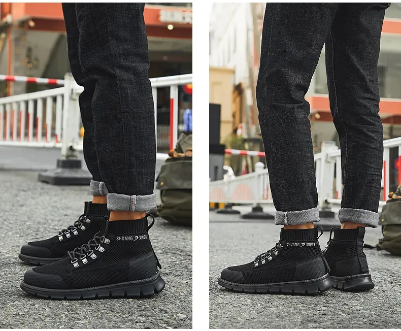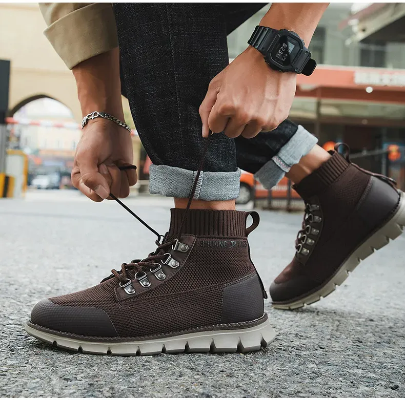 ⏰LAST DAY - 50% OFF🛒 Men’s Lightweight Knit Mid-Top Boots – Stretch Collar & Supportive Sole for Outdoor and Casual Wear