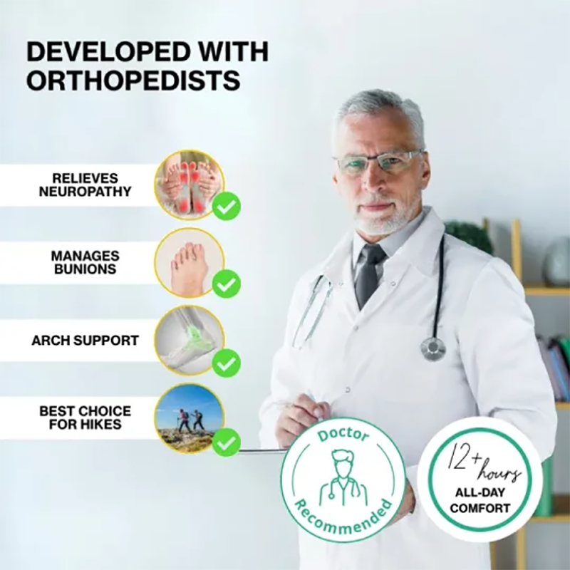 Built-in orthotic insoles support natural foot alignment, reduce foot fatigue, and relieve pressure on the arch and heel. Ideal for those with plantar fasciitis, flat feet, or overpronation.