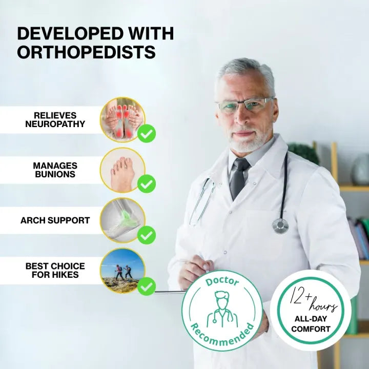 Hillde Orthotic Technology - our premium orthotic insoles with an adjustable arch booster and multi-layer cushioning provide soft, pillow-like support. They enhance comfort and help relieve pain from plantar fasciitis, flat feet, and knee pain—all the way up to your hips and lower back.