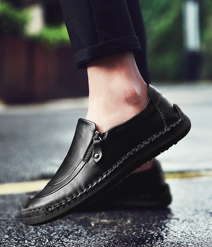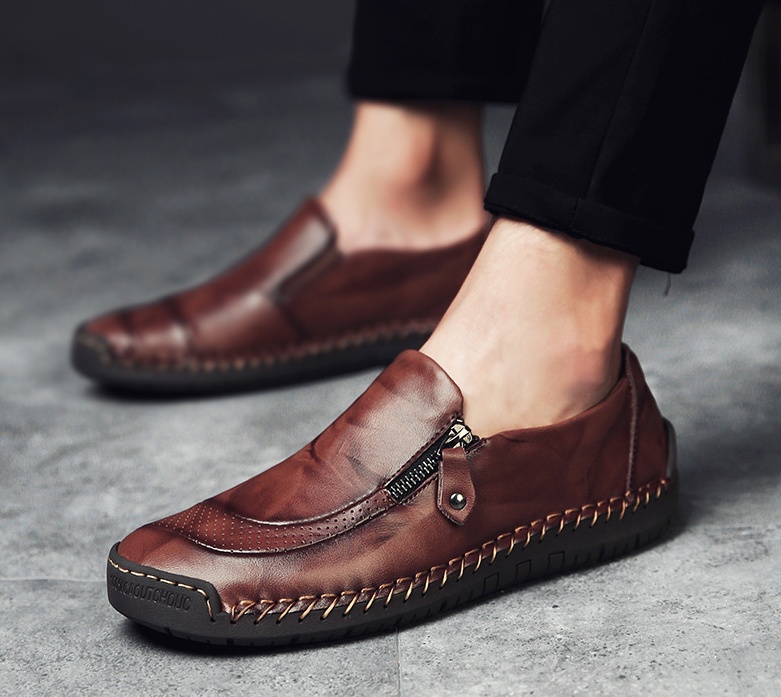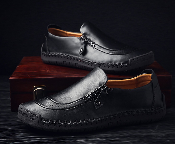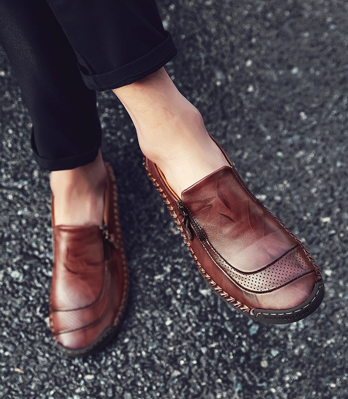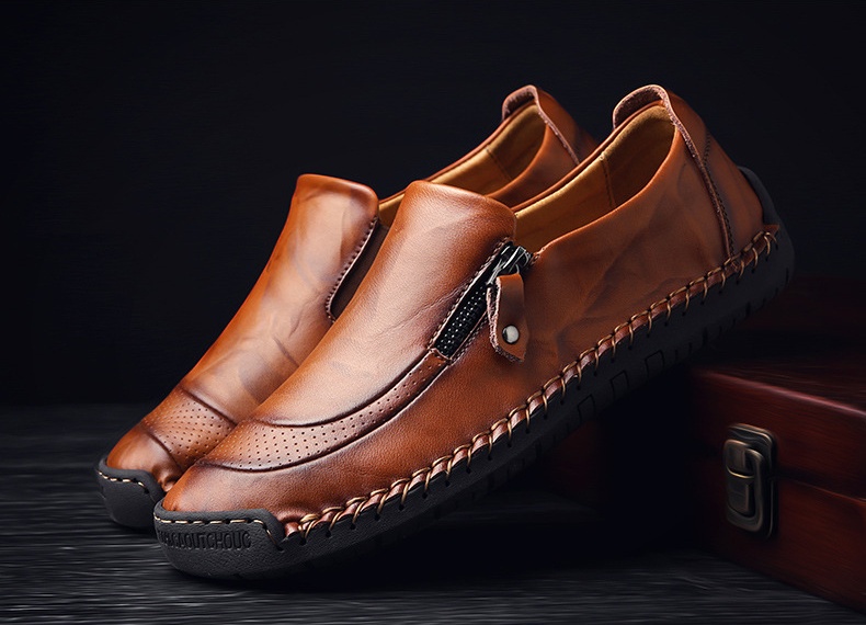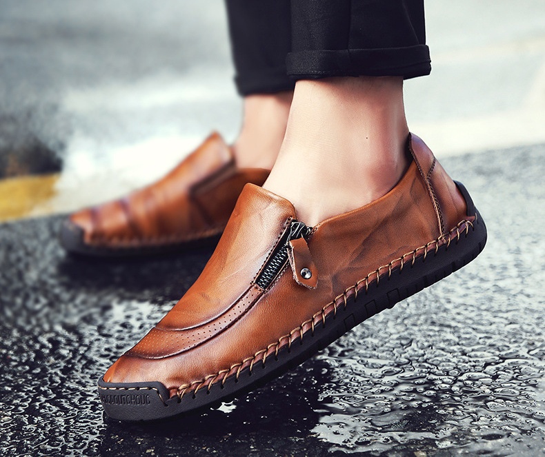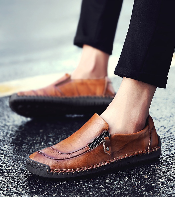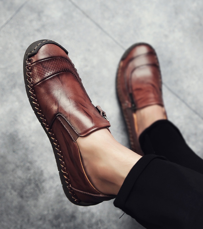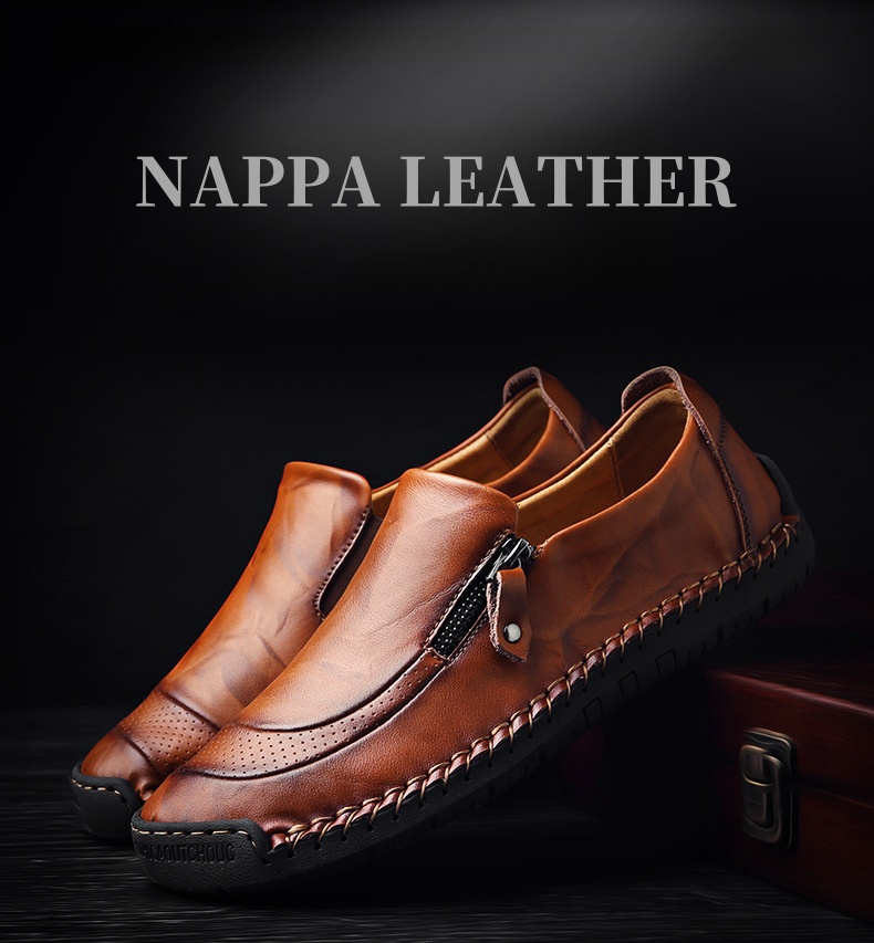 Men's Vintage British Preppy Slip-On Handmade Nappa Leather Zipper Loafers