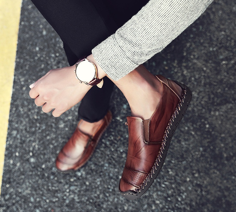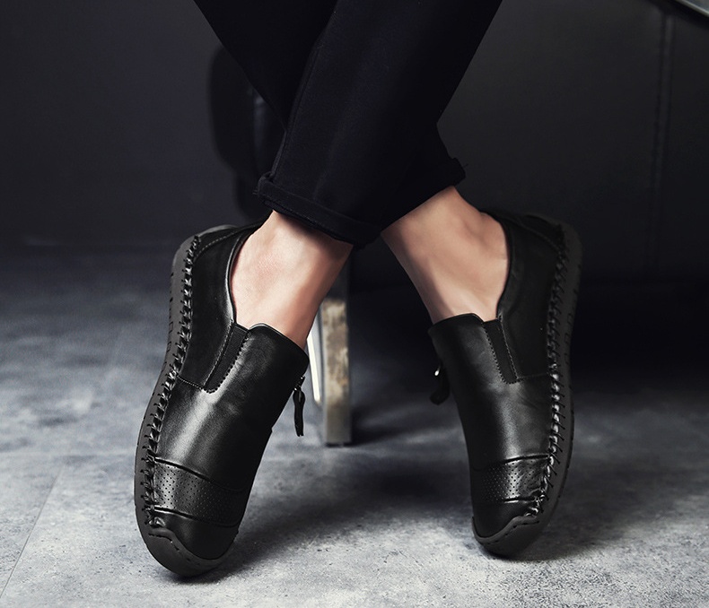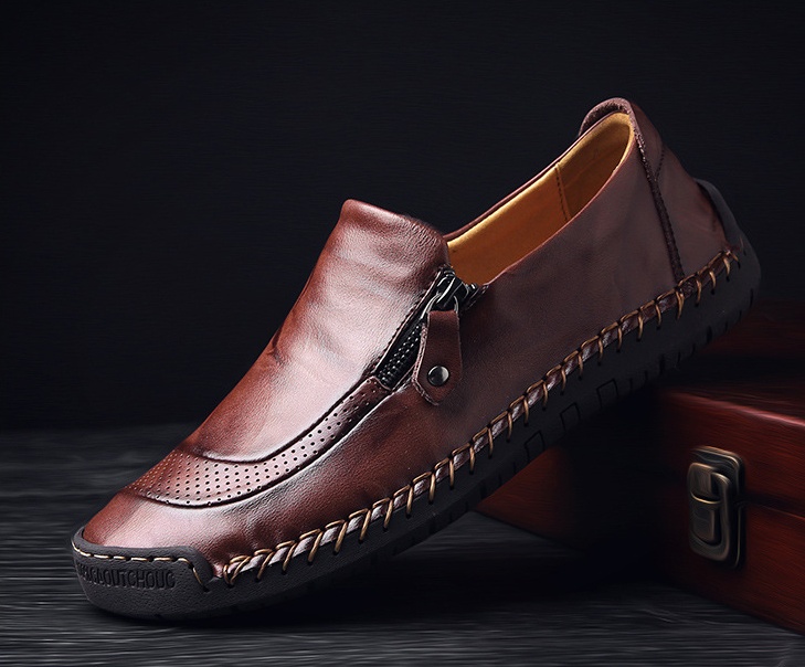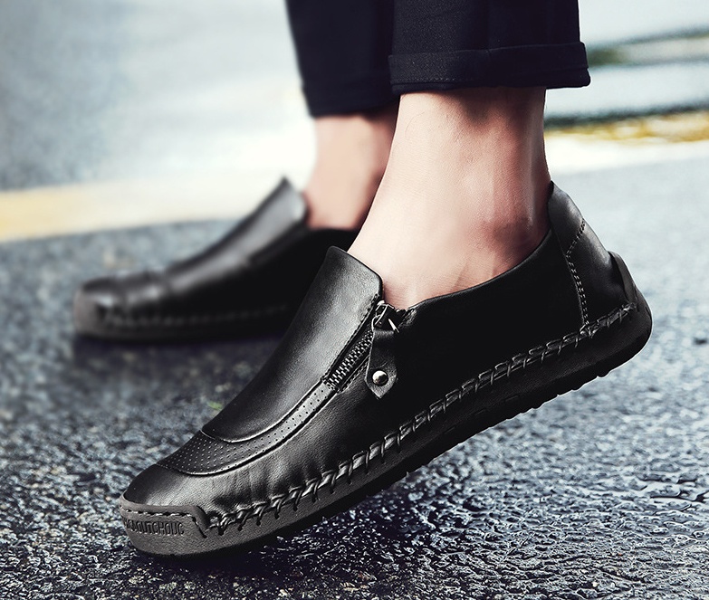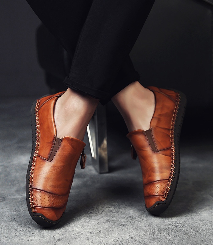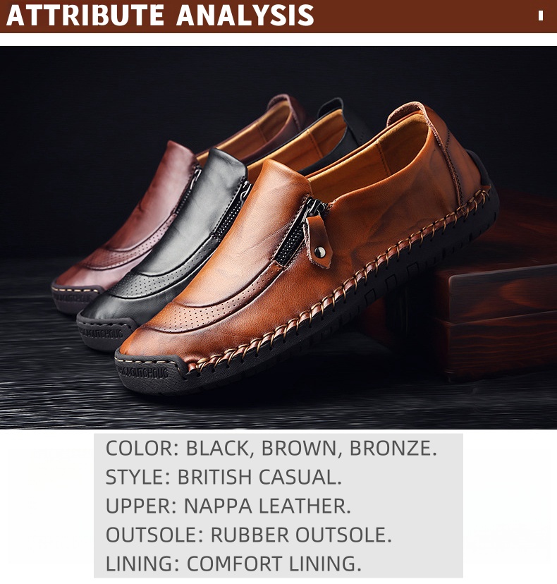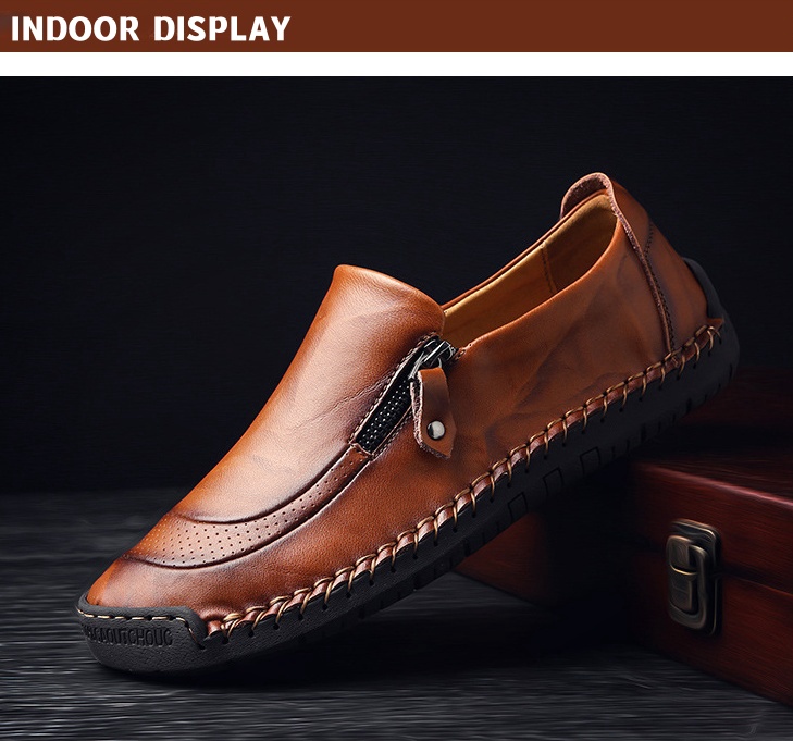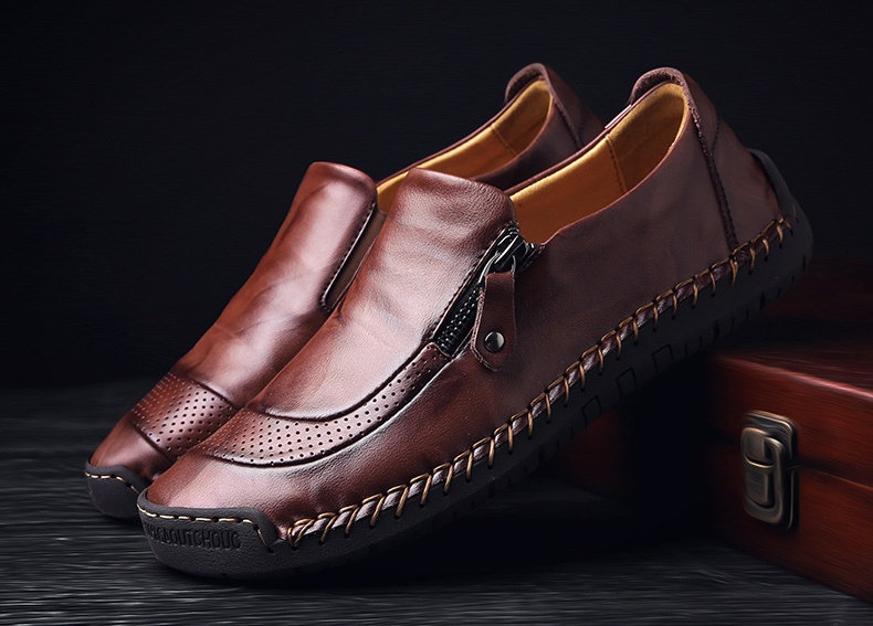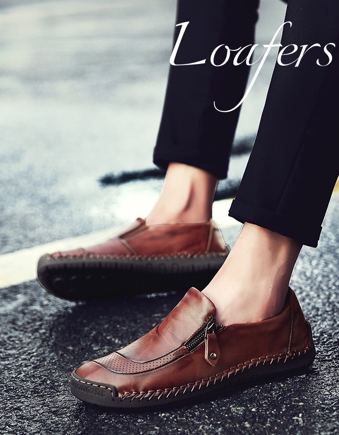 Men's Vintage British Preppy Slip-On Handmade Nappa Leather Zipper Loafers