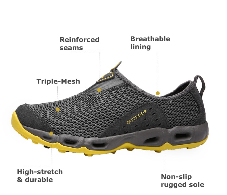 These slip-on mesh shoes are built for comfort, support, and easy movement. The breathable, water-resistant upper keeps your feet cool and dry, while the drainage sole and cushioned MD outsole offer grip and comfort on any surface. Great for stream trekking, swimming, beach walks, or everyday wear—no laces, no hassle.